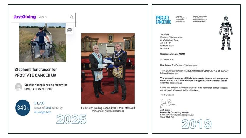 Funds Raised by Coquetdale Brethren for Prostate Cancer UK