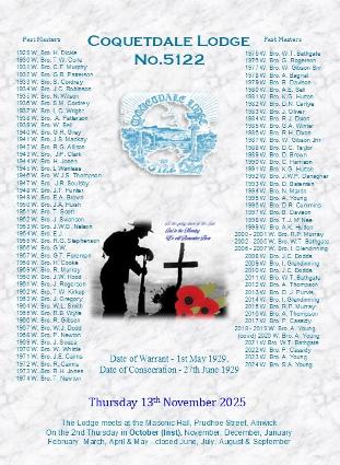 in the Masonic Hall, Alnwick at 7.0pm (unless as stated)