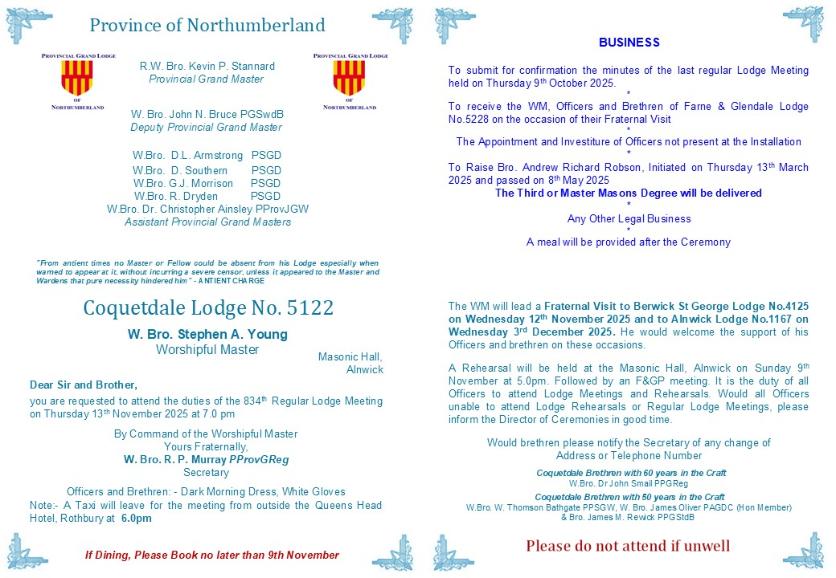 Northumberland Masons - on tour